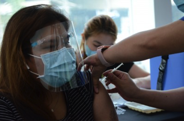 FOR PROTECTION. An overseas Filipino worker gets vaccinated against Covid-19 in Taguig City. The Philippine Consulate General is set to present its ...