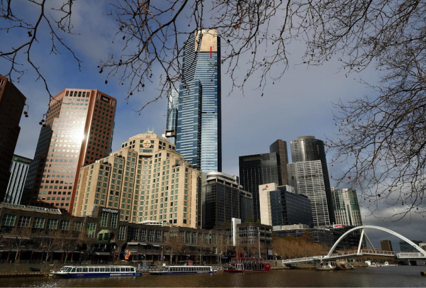 A general view of downtown Melbourne on August 6, 2021, amid a sixth lockdown for the city in efforts to ...