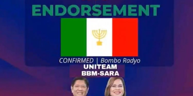 MANILA – Presidential candidate, former senator Ferdinand “Bongbong” Marcos Jr., and his running mate Davao City Mayor Sara Z. Duterte on Tuesday night welcomed the endorsement of the religious group Iglesia ni Cristo (INC), as they vowed to pursue their platform of unity to help Filipinos recover from the crisis brought about by the pandemic.