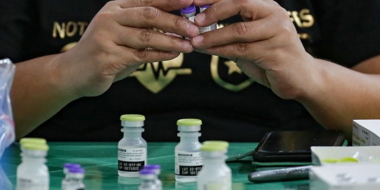 A health worker prepares Pfizer COVID-19 vaccine FILE PHOTO